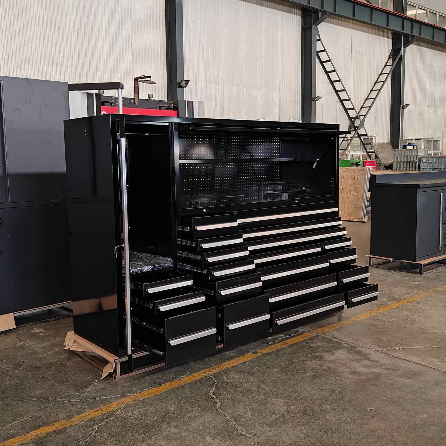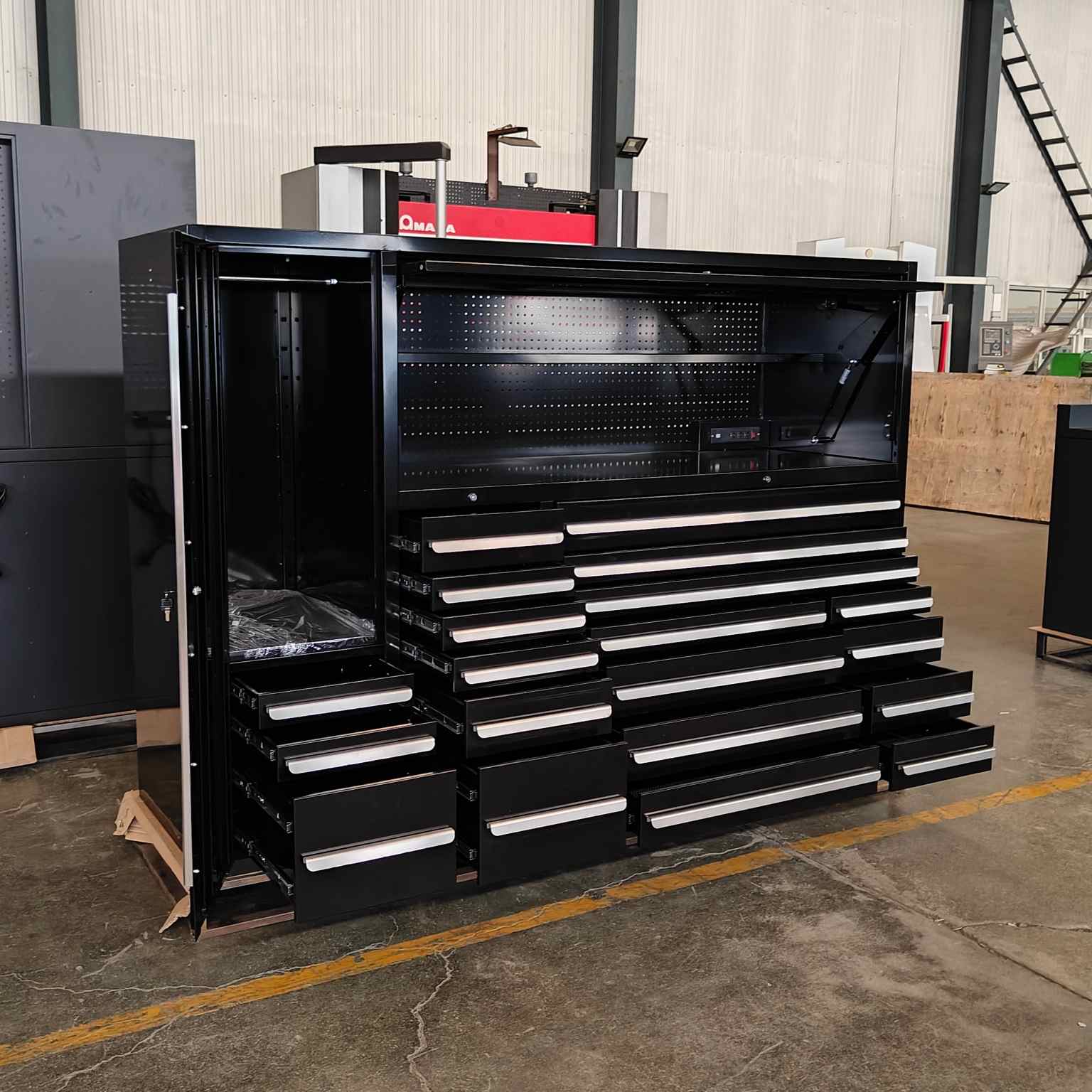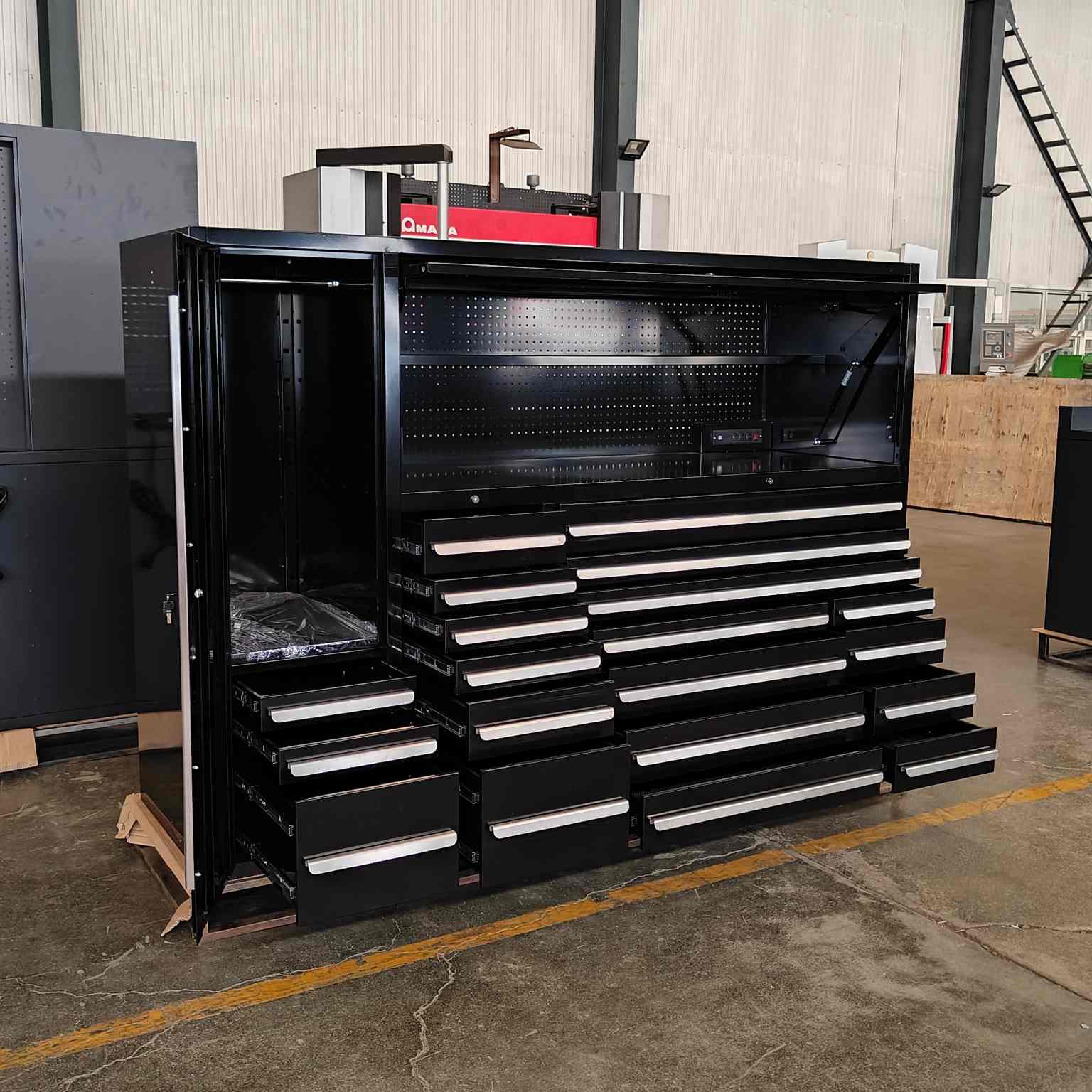 Qara çox funksional alət şkafı daha yaxşı güc və səthin bitməsini təmin edən soyuq haddelenmiş poladdan hazırlanmışdır.SamanEhtiyaclarınıza uyğun ölçü, konfiqurasiya və aksesuarları düzəldə bilər. Nəhayət və ən başlıcası, sənaye standartlarına cavab verir.
