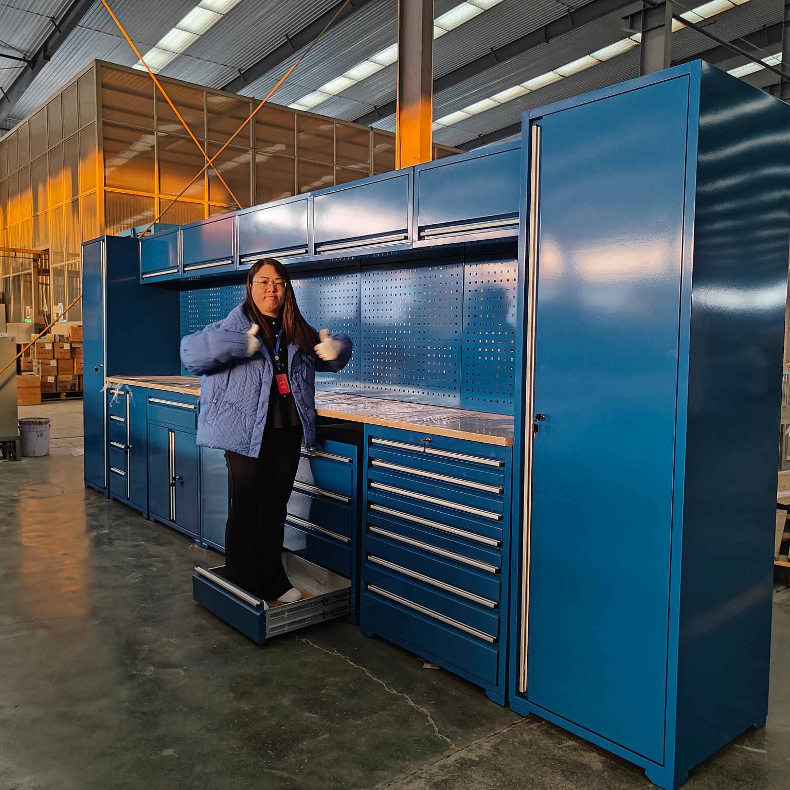 Rəng: Daimi sənaye boz və qara rəngə əlavə olaraq, ağır qaraj saxlama şkafı, fərdi qaraj üslublarına uyğun olaraq portağal və mavi kimi göz oxşayan rənglərdə düzəldilə bilər.
