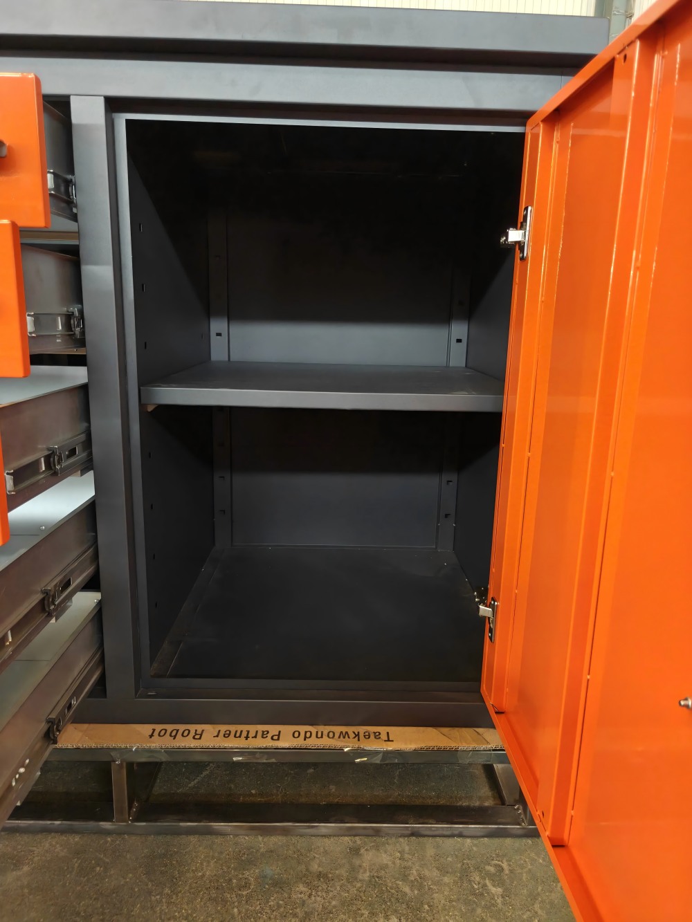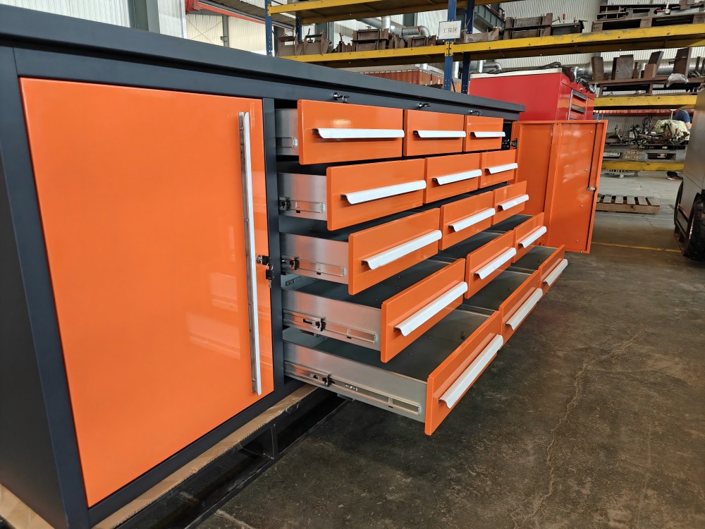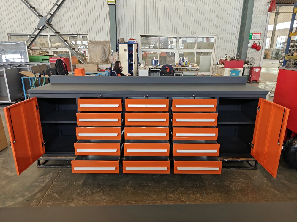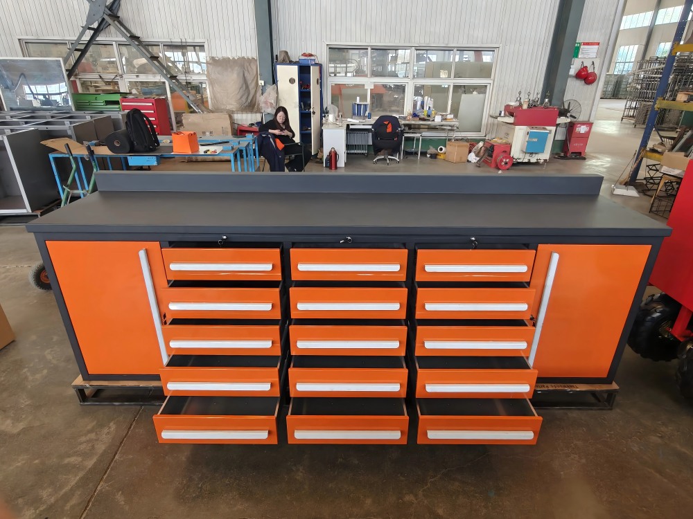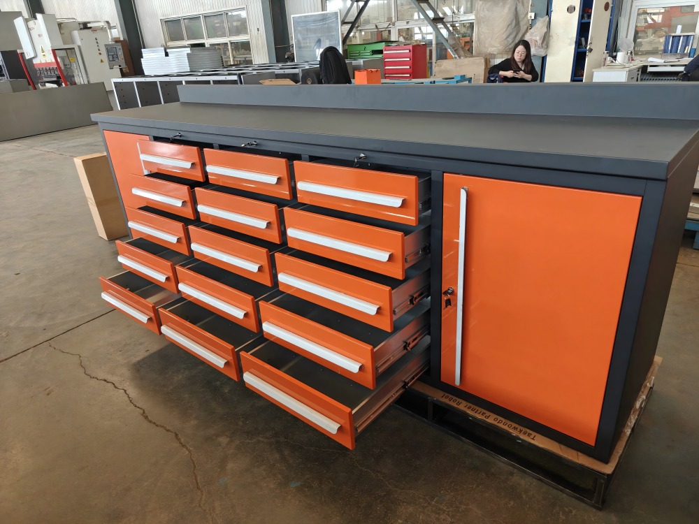 Narıncı Workbench, CNC avadanlıqları tərəfindən qırxma, yumruq, qatlama, qaynaq və digər proseslər vasitəsilə qurulmuş yüksək keyfiyyətli soyuq yayılmış polad plitələrdən hazırlanmışdır. Səthi həm gözəl, həm də davamlı olan avtomatlaşdırılmış elektrostatik çiləmə prosesi ilə müalicə olunur. Narıncı Workbench'in çekmecəsindəki üfüqi və şaquli arakəsmələr, əşyaların ölçüsünə görə məkanın ayrılmasını dəstəkləmək üçün sərbəst şəkildə tənzimlənə bilər. Vahid tipli hissələr qutuları təmizlənmiş təsnifat və saxlama əldə etmək üçün də seçilə bilər. Narıncı Workbench'in çekmecesi relsləri yüksək keyfiyyətli rulmanlar ilə hazırlanmışdır. Tək track çekmece 80 kq və bir açılış dərəcəsi 85%; İkiqat track çekmece 140 kq və 100% bir açılış dərəcəsi olan bir yük tutumu var və onu basmaq və çəkmək üçün çevik və hamardır.